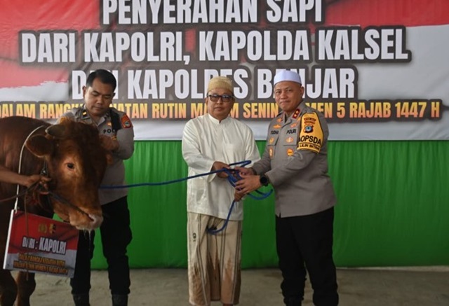 Kabid Humas Polda Kalsel Kombes Pol Adam Erwindi, S.I.K., M.H. mengatakan, dalam keterangannya Kapolda Kalsel mengatakan bahwa bantuan sapi ini diperuntukkan sebagai dukungan dalam kegiatan Malam Senin momen pengajian rutin 5 Rajab 1447 H.