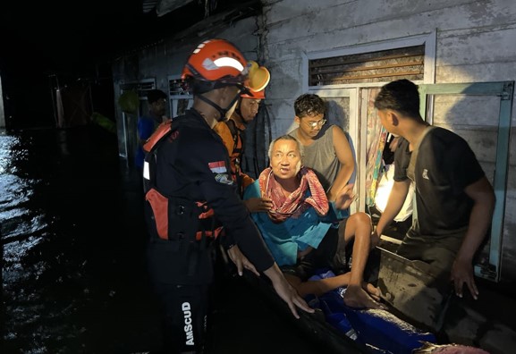 MARTAPURA, Kalimantanlive.com – Evakuasi terhadap korban banjir dilakukan oleh Kantor Pencarian dan Pertolongan (Kansar) Banjarmasin pada Sabtu (27/12/2025) malam.