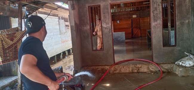 Pembersihan tersebut mencakup fasilitas pendidikan, fasilitas umum, serta rumah-rumah warga yang terdampak lumpur akibat banjir bandang.