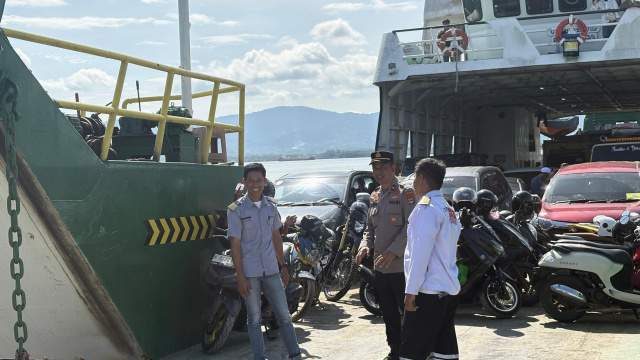 Memberikan kenyamanan bagi pengendara, personel Polsek Kelumpang Hilir melakukan peningkatan pengamanan di pelabuhan feri Tarjun, Kecamatan Kelumpang Hilir.