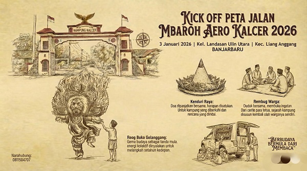 BANJARBARU, Kalimantanlive.com – Kampung Budaya Mbaroh resmi memulai langkah strategis pengembangan kawasan melalui Kick Off Peta Jalan Mbaroh Aero Kalcer 2026 yang akan digelar pada Sabtu (3/1/2026) pukul 14.30 WITA di Kelurahan Landasan Ulin Utara, Kecamatan Liang Anggang, Kota Banjarbaru.