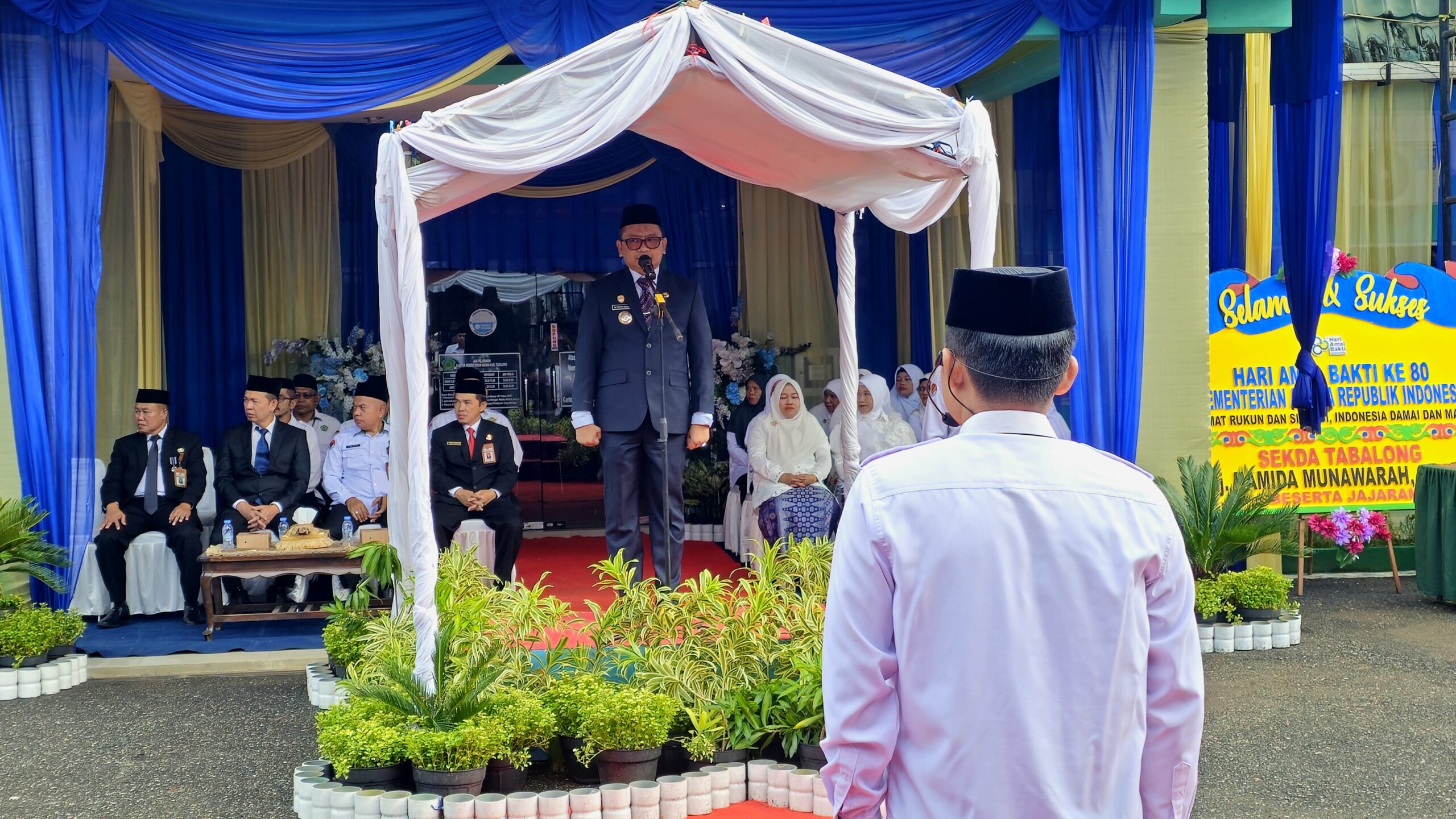 Upacara HAB ke-80 ini dipimpin Bupati Tabalong, H Muhammad Noor Rifani yang diikuti jajaran Kemenag mulai dari guru tingkat PAUD, Madrasah Ibtidaiyah (MI), Madrasah Tsanawiyah (MTs) hingga Madrasah Aliyah (MA).