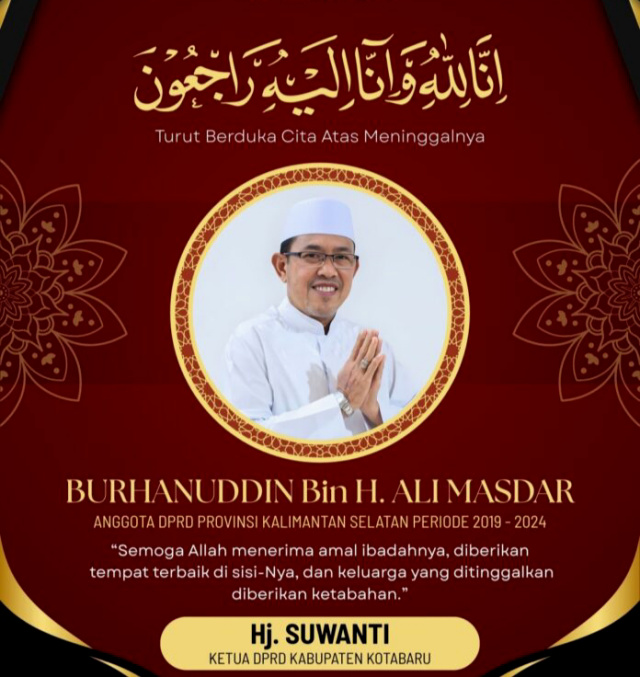 Burhanudin yang merupakan mantan anggota DPRD Provinsi Kalimantan Selatan periode 2019-2024, menghembuskan nafas terakhir di Rumah Sakit Umum Daerah (RSUD) Pangeran Jaya Sumitra (PJS) Kotabaru.