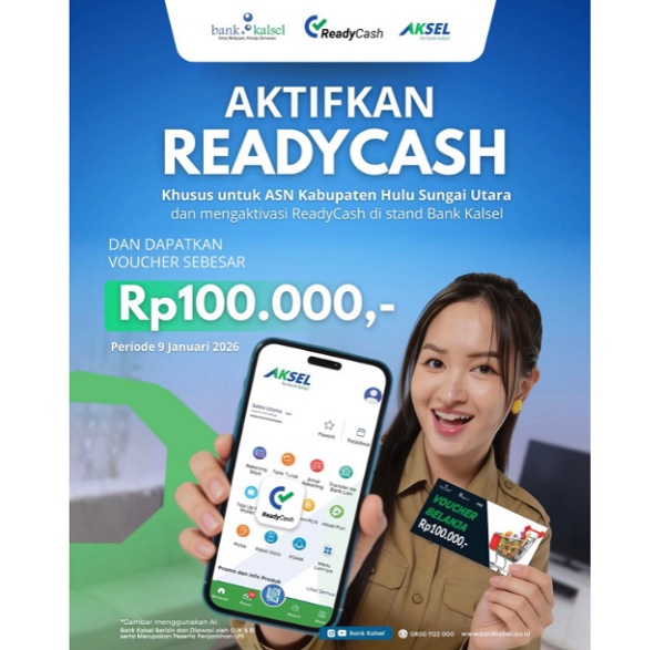 Syaratnya mudah! ASN Kabupaten Hulu Sungai Utara cukup mengunjungi stand Bank Kalsel pada 9 Januari 2026 mendatang, dan melakukan aktivasi produk ReadyCash secara langsung melalui aplikasi AKSEL by Bank Kalsel. Dengan sekali aktivasi, voucher belanja senilai Rp100.000 bisa langsung didapatkan.