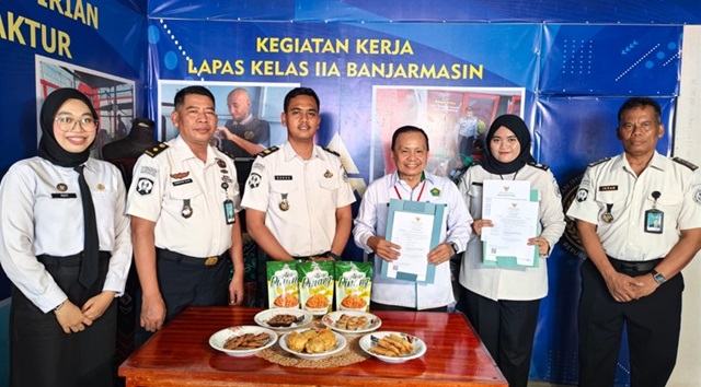 BANJARMASIN, Kalimantanlive.com – Lapas Kelas IIA Banjarmasin terus memperkuat pembinaan kemandirian warga binaan melalui peningkatan kualitas dan legalitas produk UMKM.