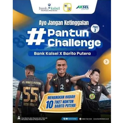 “Ayo ikutan #PantunChallenge bareng Bank Kalsel & Barito Putera! Tulis pantun paling kreatifmu di kolom komentar dan menangkan 10 tiket nonton Barito Putera!” tulis Bank Kalsel dalam unggahan Instagramnya.