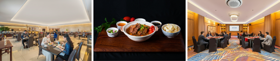 Untuk melengkapi pengalaman menginap, Aston Cimone Hotel & Convention Center menghadirkan Istana Nelayan Resto, restoran dengan suasana nyaman yang menyajikan pilihan menu Indonesia dan internasional, serta didukung area publik modern dan fasilitas pendukung lainnya yang menunjang kenyamanan tamu selama menginap.