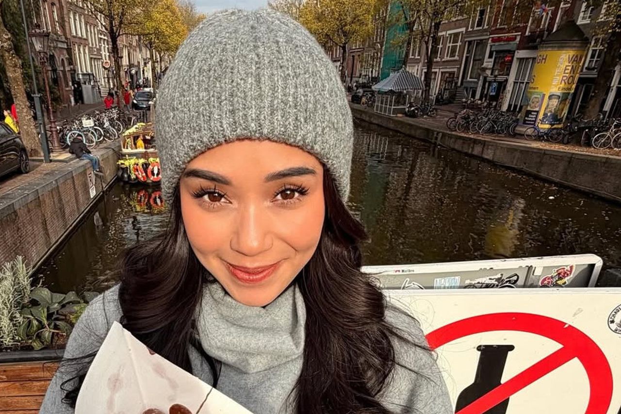 Untuk suasana semi-formal, Lula berani bermain motif. Outer bermotif geometris yang dipadukan dengan tas selempang kecil menjadi pilihan andalannya. Sentuhan ini membuat tampilannya tetap santai, namun cocok untuk acara malam.