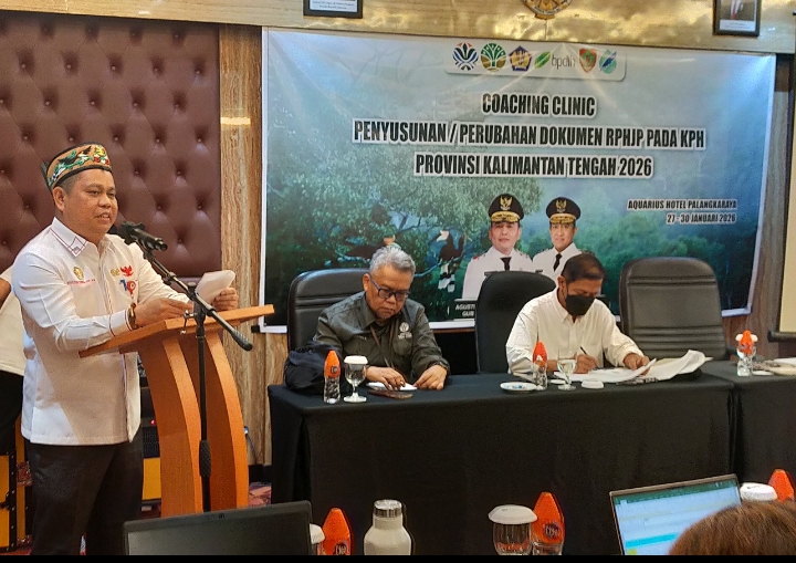 PALANGKA RAYA, Kalimantaive.com – Dinas Kehutanan Provinsi Kalimantan Tengah atau Dishut Kalteng, Rabu (28/1/2026) menggelar kegiatan coaching clinic penyusunan / perubahan Dokumen Rencana Pengelolaan Hutan Jangka Panjang (RPHJP) pada Kesatuan Pengelolaan Hutan (KPH) se-Kalimantan Tengah.