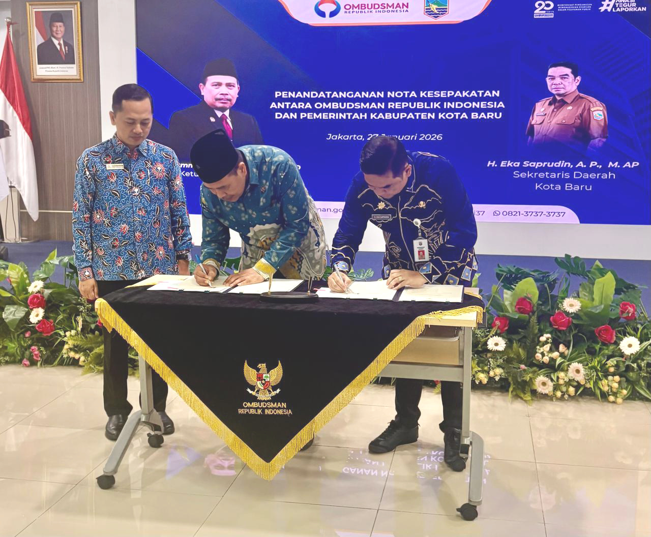 Penandatanganan dilakukan Sekretaris Daerah (Sekda) Kotabaru H Eka Saprudin bersama-sama pejabat teras Ombudsman RI.