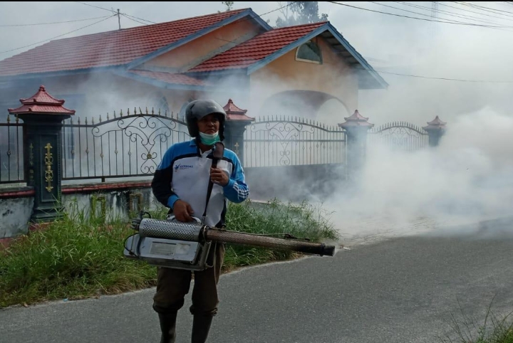 Kegiatan pelasanaan fogging tersebut sebagai tindak lanjut penanganan kasus Demam Berdarah Dengue (DBD) yang muncul di kawasan Mendawai, Kelurahan Palangka, Kota Palangka Raya, Kalimantan Tengah.