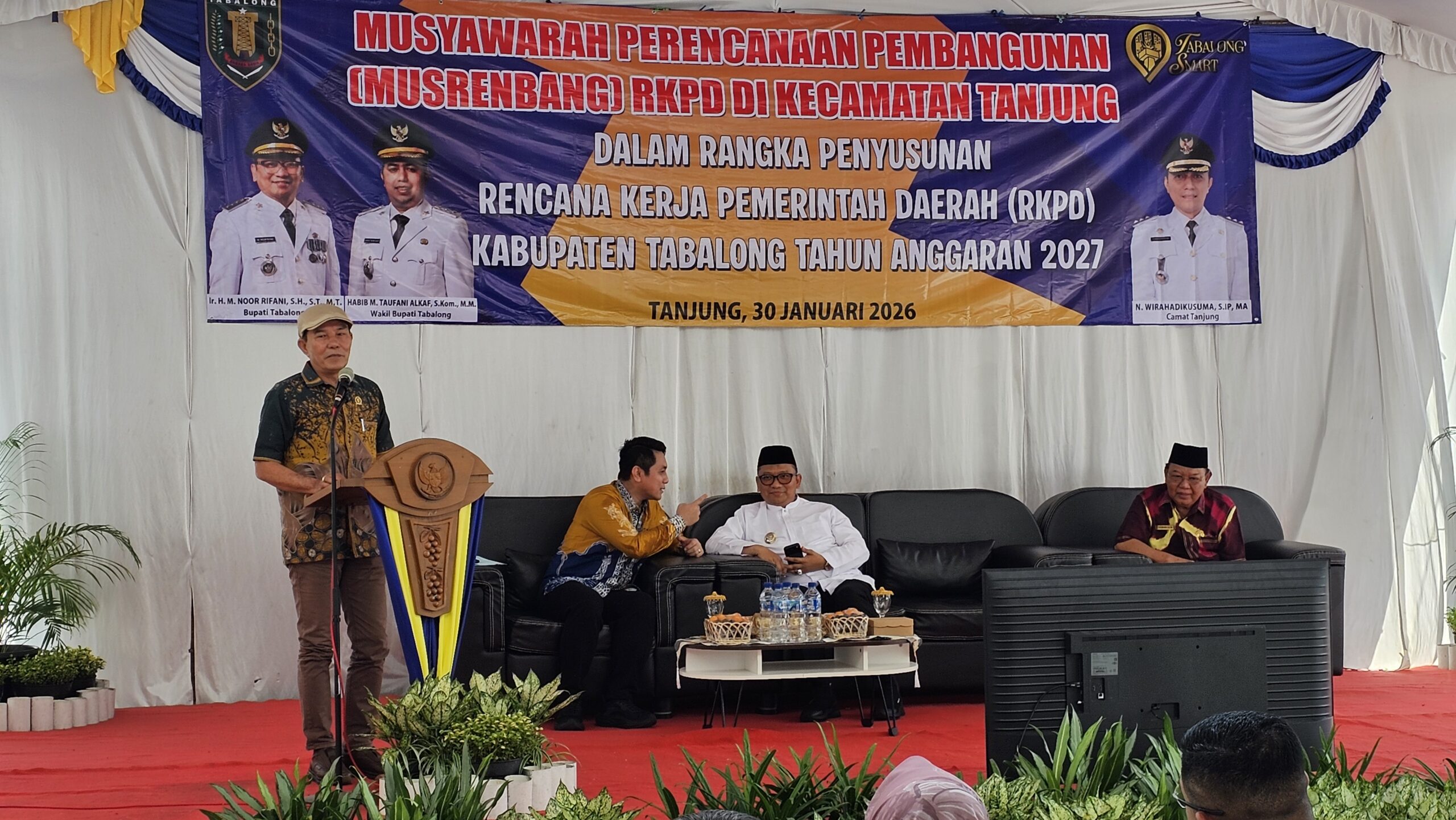 Musrenbang RKPD 2027 di Tanjung ini dihadiri Bupati Tabalong, H Muhammad Noor Rifani dan didampingi Ketua Komisi I DPRD Tabalong, H Akhmad Helmi serta anggota DPRD Tabalong, H Tadzuddin di halaman Kantor Camat, Jumat (30/01/2026).