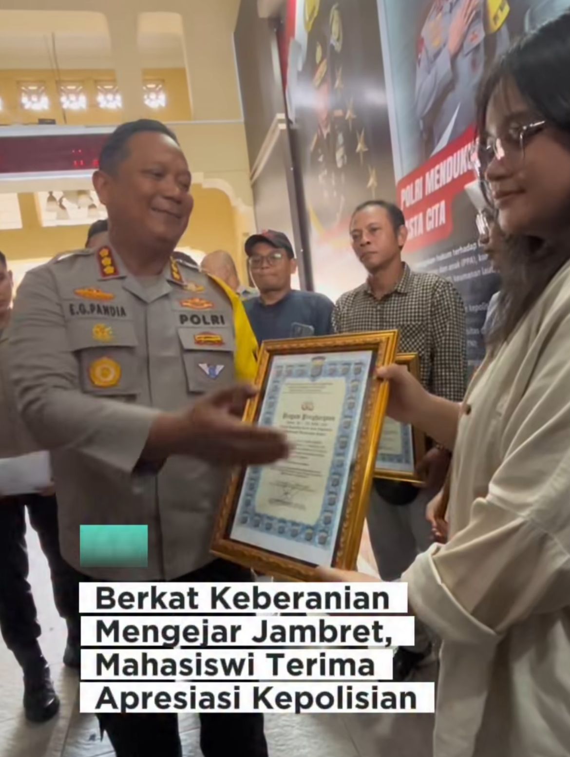 Tak sendiri, rekan semotornya Ayunda, serta dua warga Pakel yang turut membantu proses penangkapan, yakni Fandy Yulianto dan Handoko, juga menerima penghargaan atas kontribusinya.