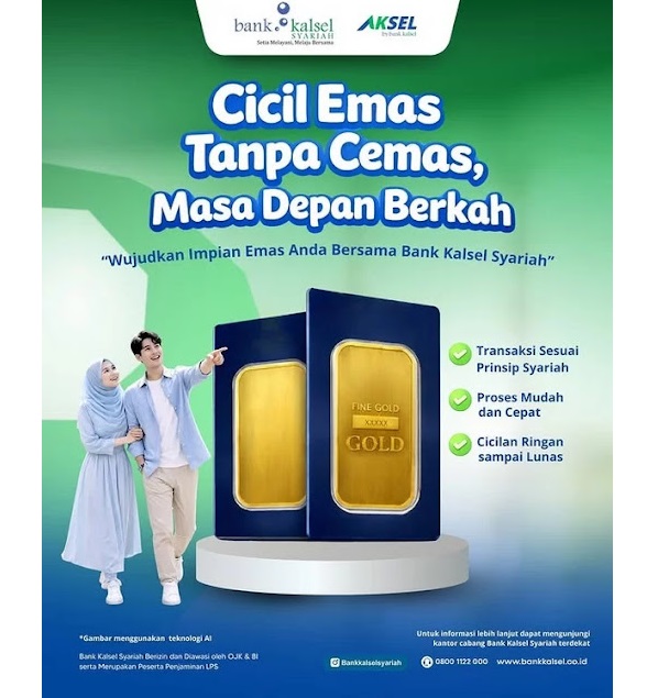 “Kami membantu Anda memiliki emas dengan cara yang aman, mudah, dan sesuai prinsip syariah. Karena kebahagiaan masa depan dimulai dari langkah kecil hari ini,” tulis Bank Kalsel Syariah.