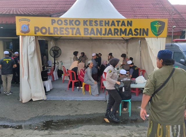 Kapolresta Banjarmasin, Kombes Pol. Cuncun Kurniadi, S.I.K., M.H. melalui Kasi Humas Ipda Sunarmo, S.H. mengatakan jamaah tersebut langsung diberikan pertolongan pertama oleh tim Dokkes Polri yang sudah bersiaga.
