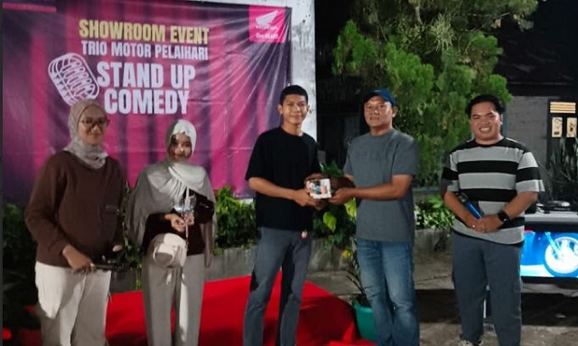 PELAIHARI, Kalimantanlive.com – Suasana penuh tawa dan keakraban terasa di showroom Honda Trio Motor Pelaihari saat digelarnya Showroom Event bertema Stand Up Comedy. Kegiatan ini menghadirkan hiburan segar bagi para konsumen dan masyarakat yang berkunjung, sekaligus menjadi ajang berkumpul yang menyenangkan di lingkungan showroom Honda.