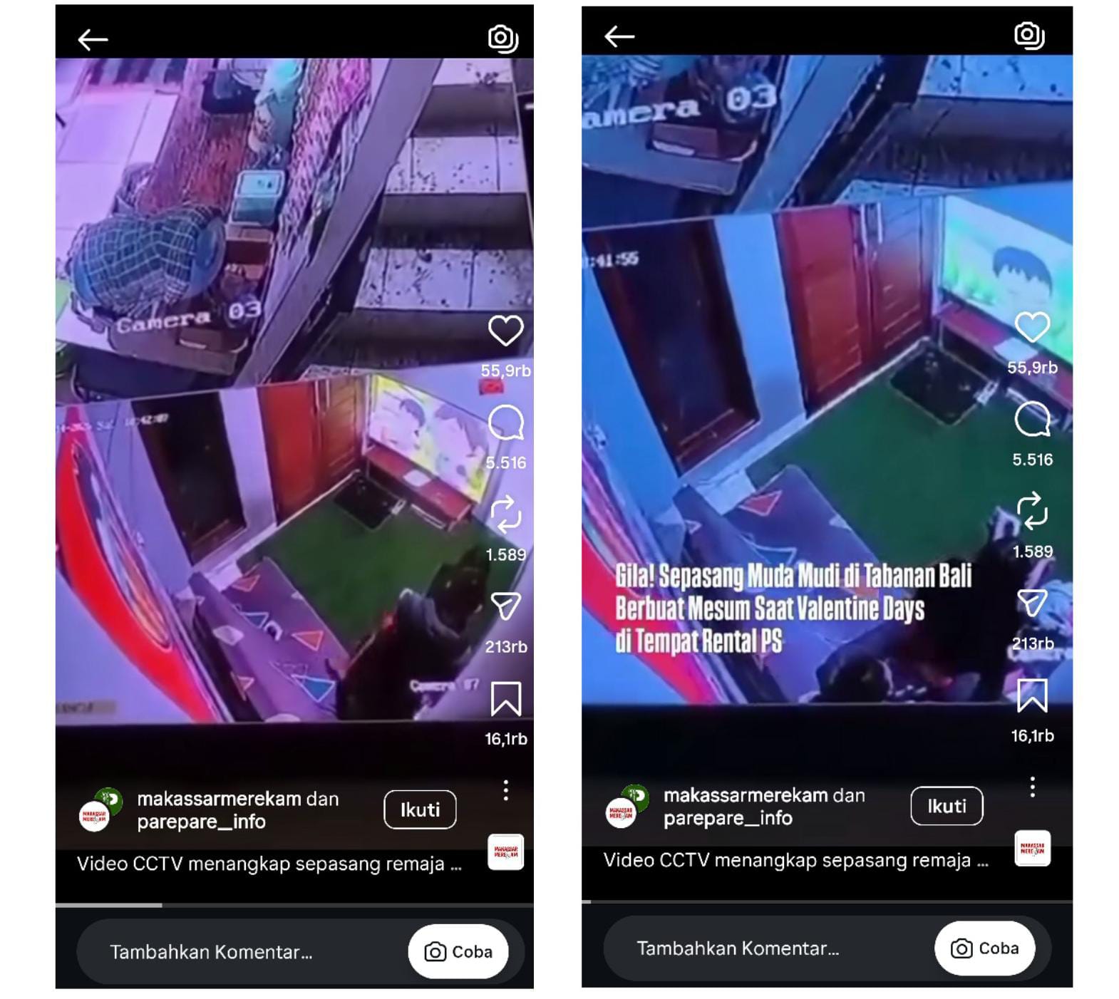Dalam video yang beredar, kedua remaja itu tampak panik saat ditegur. Mereka segera menghentikan aktivitasnya dan tergesa-gesa mengenakan kembali pakaian masing-masing.