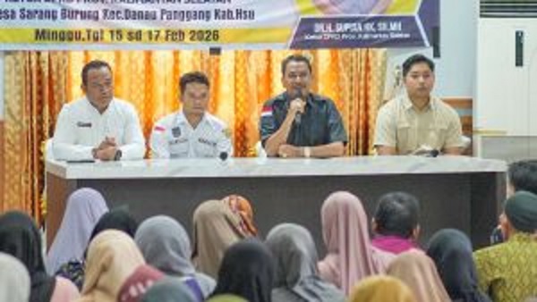 KANDANGAN, Kalimantanlive.com – Warga Desa Sarang Burung, Kecamatan Danau Panggang, terlihat antusias mengikuti kegiatan Sosialisasi Revitalisasi dan Aktualisasi Nilai-nilai Ideologi Pancasila (Sosrev) yang dipimpin Ketua Dewan Perwakilan Rakyat Daerah Provinsi Kalimantan Selatan, DR. H. Supian HK, SH, MH, Senin (16/2/2026).