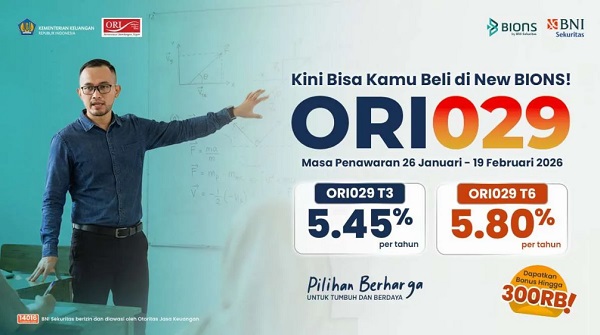 ORI029T3 – Tenor 3 tahun, masa penawaran 26 Januari – 19 Februari 2026, jatuh tempo 15 Februari 2029, imbal hasil 5,45% per tahun.