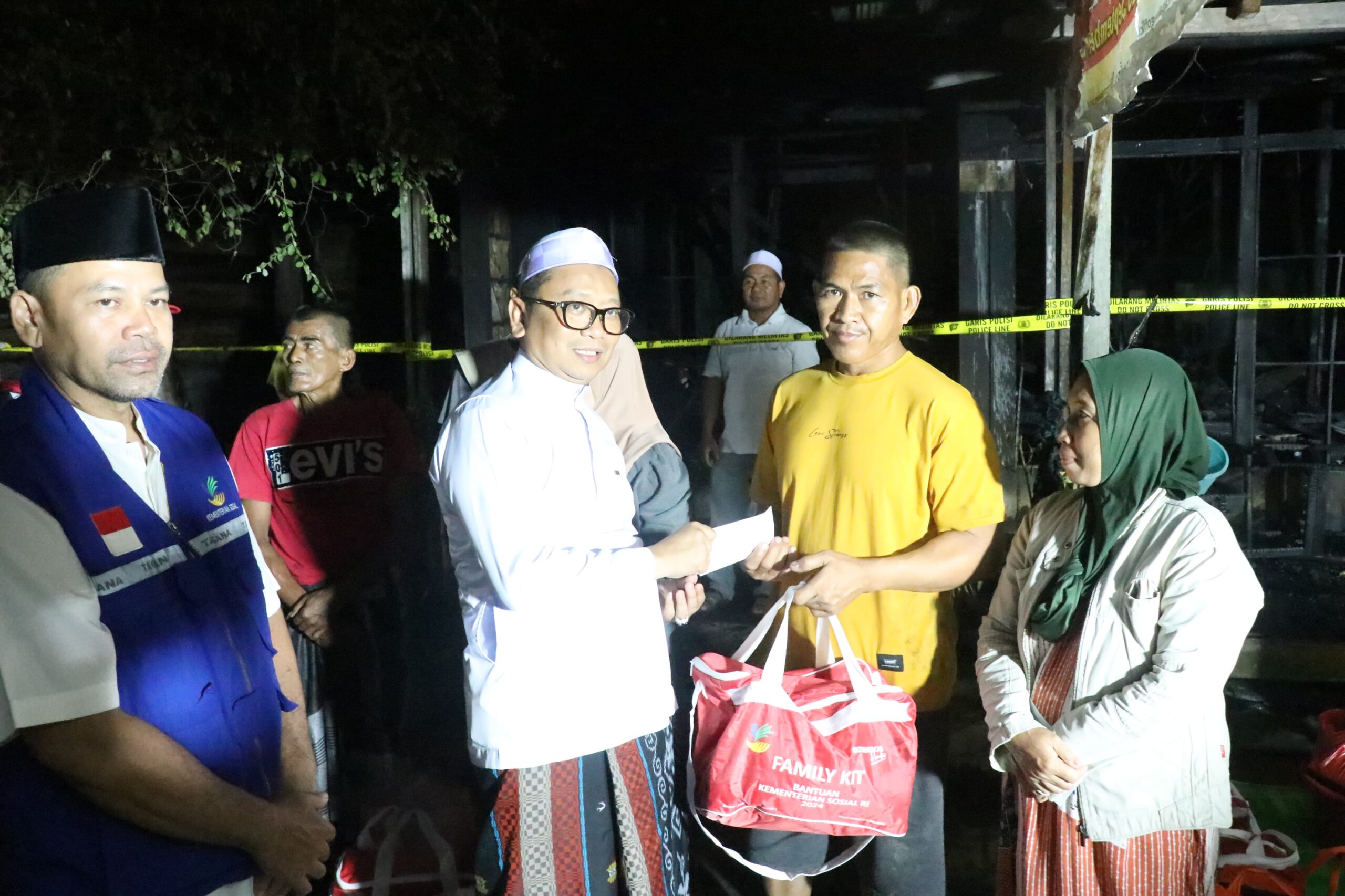 “Malam ini kami datang berkunjung langsung ke warga yang terdampak musibah kebakaran yang terjadi sore tadi,” Bupati usai menyalurkan bantuan.
