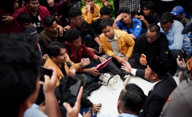 Dengan setelan jas hitam, dari biru muda dan sepatu mengkilat, ia duduk bersila bersama mahasiswa, menciptakan suasana yang lebih akrab dan santai. Harum, sapaan akrab Rudy Mas’ud pun membuka perbincangan dengan menanyakan langsung data dan pengalaman mahasiswa terkait program beasiswa yang mereka terima.