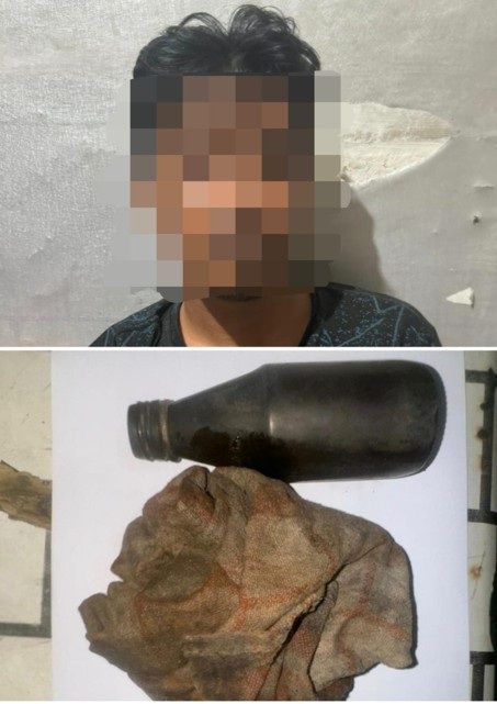 Selain mengamankan DH, petugas juga mengamankan barang bukti berupa sebuah botol kaca, sebuah sumbu diduga sebagai media pembakar, dan sepeda motor yang digunakan pelaku saat melakukan aksinya.
