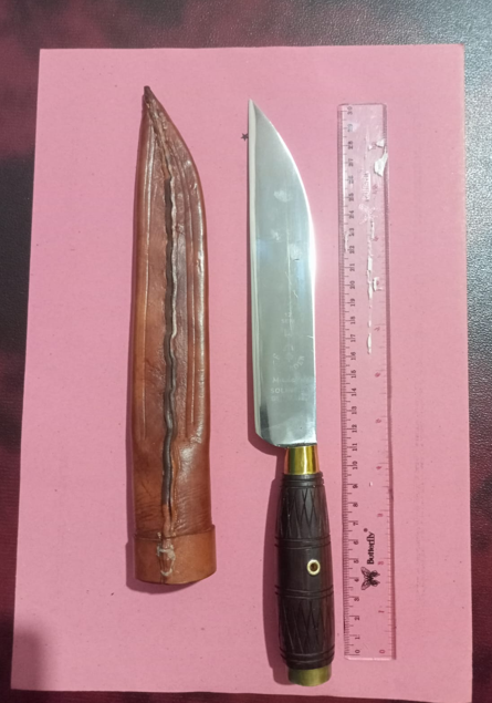 Petugas pun menyambangi pria tersebut, dan melakukan penggeledahan. Dari penggeledahan tersebut, ditemukan sebilah sajam jenis belati lengkap dengan sarungnya dengan panjang sekitar 30 cm.