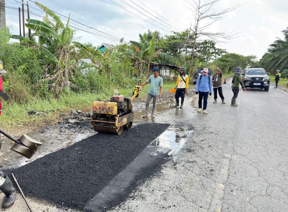 “Ada aspirasi dari warga mengenai lubang di jalan yang saat digenangi air hujan sangat sulit terlihat dan berpotensi menyebabkan pengendara sepeda motor terjatuh. Ini tentu sangat membahayakan keselamatan jiwa,” terang AKP Andre.