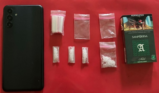 “Petugas kemudian mendatangi rumah yang dimaksud dan melakukan penggeledahan, di dalam kamar kami menemukan sebuah kotak rokok yang terletak di lantai. Di dalam kotak rokok tersebut terdapat 4 paket plastik klip berisi serbuk kristal diduga narkotika jenis sabu,” jelas Iptu Joko.
