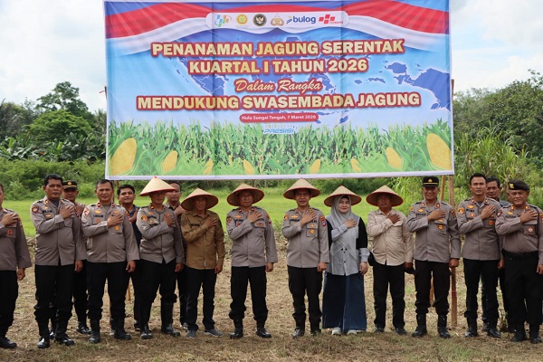 BARABAI, Kalimantanlive.com – Polres Hulu Sungai Tengah (HST) mengikuti kegiatan pencanangan sentra jagung wilayah Kalimantan Selatan secara daring melalui zoom meeting, Sabtu (7/3/2026).