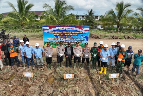 Penanaman jagung dilaksanakan pada Sabtu ( 7/3/2026) sore dan dipusatkan di lahan PT. Pancaran Argo, Desa Sekatabaru, Kecamatan Tamban.