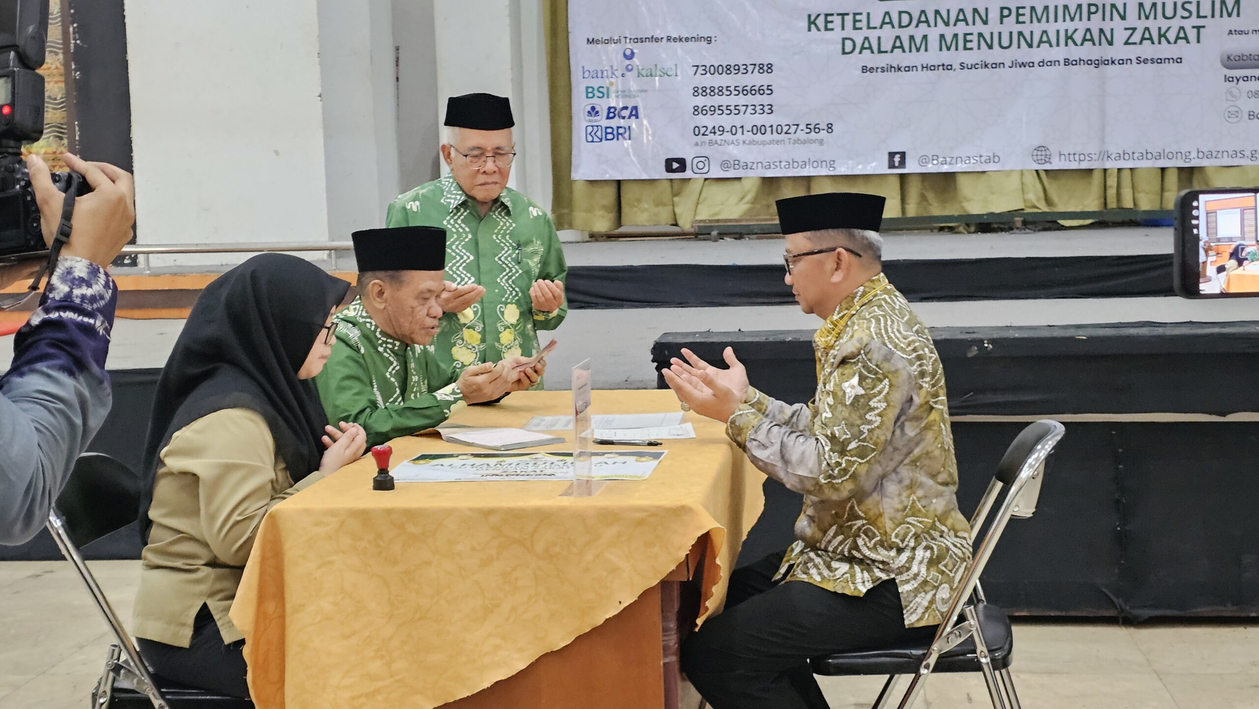 Bupati Tabalong menandatangani nota kesepahaman antara Pemkab Tabalong dengan Baznas Tabalong tentang Optimalisasi Pengumpulan Zakat di lingkungan Pemkab Tabalong melalui program Beli Beras Petani (Bela Tani).