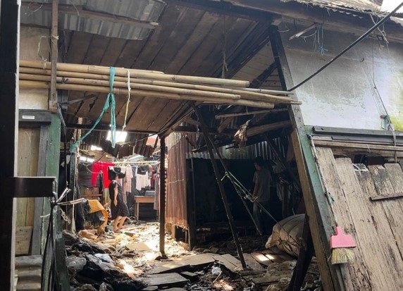 Seorang pedagang yakni Suwarni (57) jadi korban dalam peristiwa tersebut, karena tertimpa material bangunan yang ambruk.