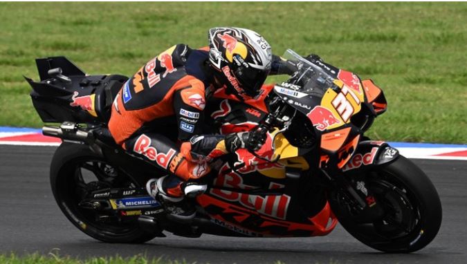Pedro Acosta yang sukses meraih podium dua di MotoGP Thailand dan juara Sprint Race di Buriram, juga tampil berani.