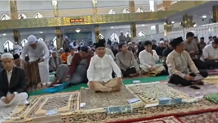 Keduanya tampak hikmat mengikuti rangkaian kegiatan Salat Idulfitri 1447 Hijriah di Masjid Raya Darussalam yang dihadiri ribuan warga muslim di Kota Palangka Raya.