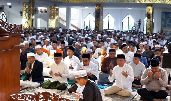 PALANGKA RAYA, Kalimantanlive.com – Berita ini dilaporkan dari Palangka Raya. Gubernur Kalimantan Tengah, Agustiar Sabran, bersama Wakil Gubernur Edy Pratowo melaksanakan Salat Idulfitri 1447 Hijriah di Masjid Raya Darussalam, Sabtu (20/3).