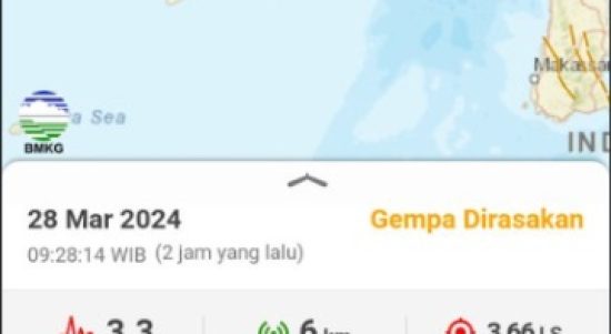 KALIMANTANLIVE.COM – Gempa tektonik yang berjarak 68 kilometer arah tenggara Kabupaten Tanah