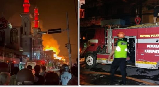 BATULICIN, KALIMANTANLIVE.COM – Sejumlah anggota pemadam kebakaran berjibaku untuk memadamkan kobaran api