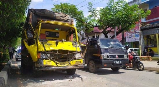 BANJARMASIN, KALIMANTANLIVE.COM – Gara-gara sopir truk mein handphone (Hp), tabrakan beruntun terjadi