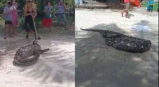 RIAU, kalimantanlive.com – Warga dibuat heboh dengan penampakan ular sanca sepanjang 5