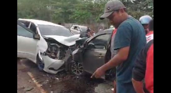 KOTABARU, Kalimantanlive.com – Beredar video dan foto tabrakan antara mobil Avanza vs