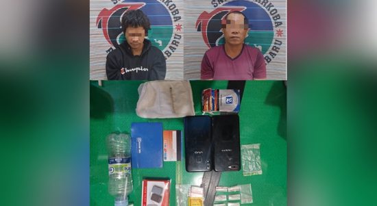 KOTABARU, KALIMANTANLIVE.COM – Dua pria ini tak berkutik ketika dibekuk anggota Satuan