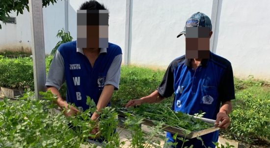 memanen seledri hasil budidaya hidroponik