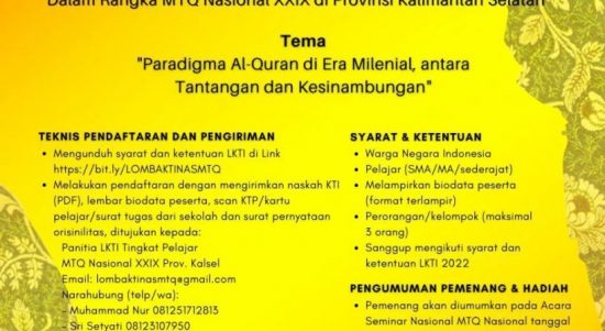 BANJARMASIN, KALIMANTANLIVE.COM – Meskipun telah selesai, gelaran Musabaqah Tilawatil Qur’an (MTQ) Nasional