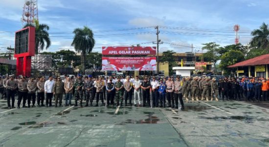 BANJARMASIN, KALIMANTANLIVE.COM – Sebanyak 500 personel gabungan diturunkan dalam kegiatan apel gelar