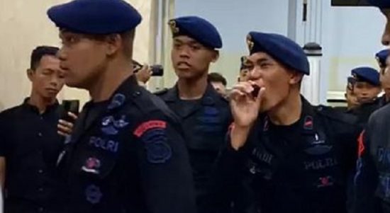 KALIMANTANLIVE.COM – Video viral memperlihatkan puluhan anggota Brimob membuat gaduh dengan melontarkan