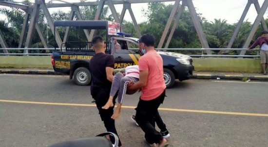 BATULICIN, KALIMANTANLIVE.COM – Warga Kabupaten Tanahbumbu yang melintas di jembatan Desa Mantewe