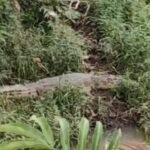 KOTABARU, KALIMANTANLIVE.COM – Kemunculan seekor buaya berukuran besar di semak-semak dekat aliran
