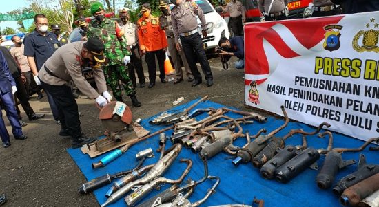 BARABAI, kalimantanlive.com – Pemusnahan knalpot brong secara simbolis dilaksanakan di halaman Stadion