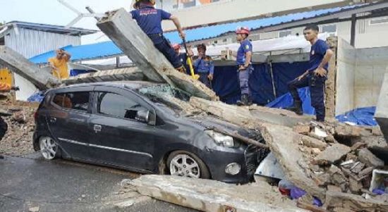 BANJARMASIN, KALIMANTANLIVE.COM – Akibat guyuran hujan lebat disertai petir, tembok penampungan air